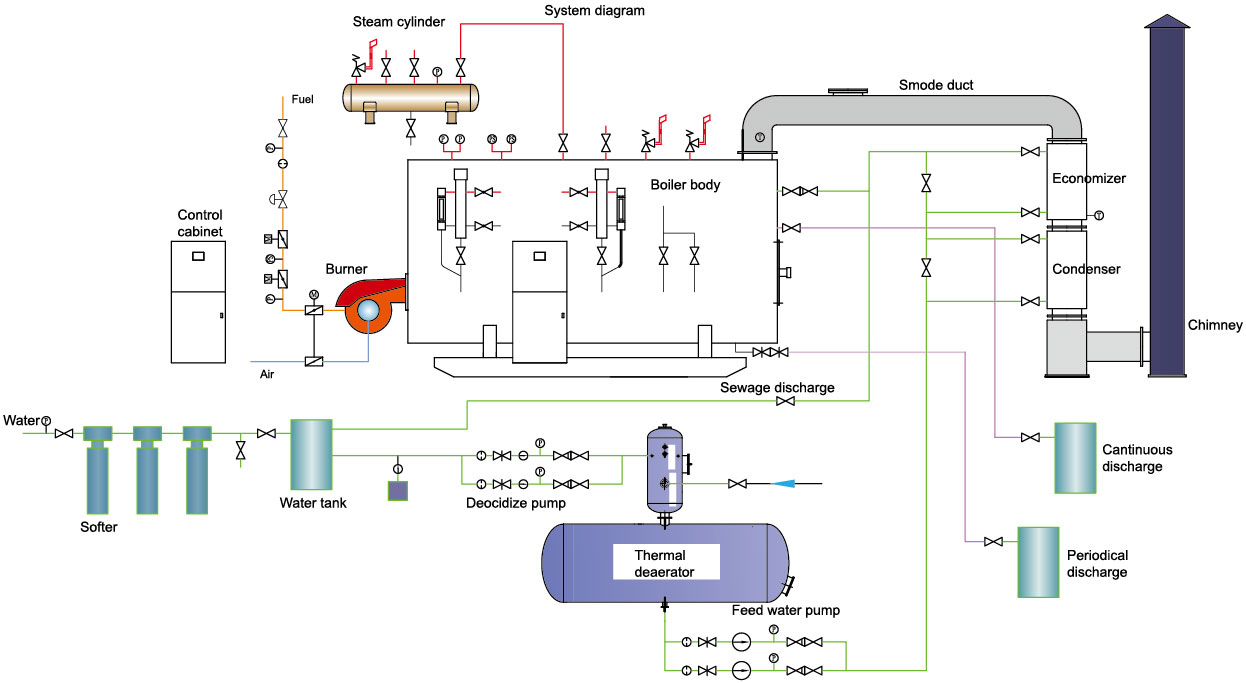 • Steel tube fin energy saver is arranged at the tail of the boiler, which has high heat transfer efficiency and reduces fuel consumption.